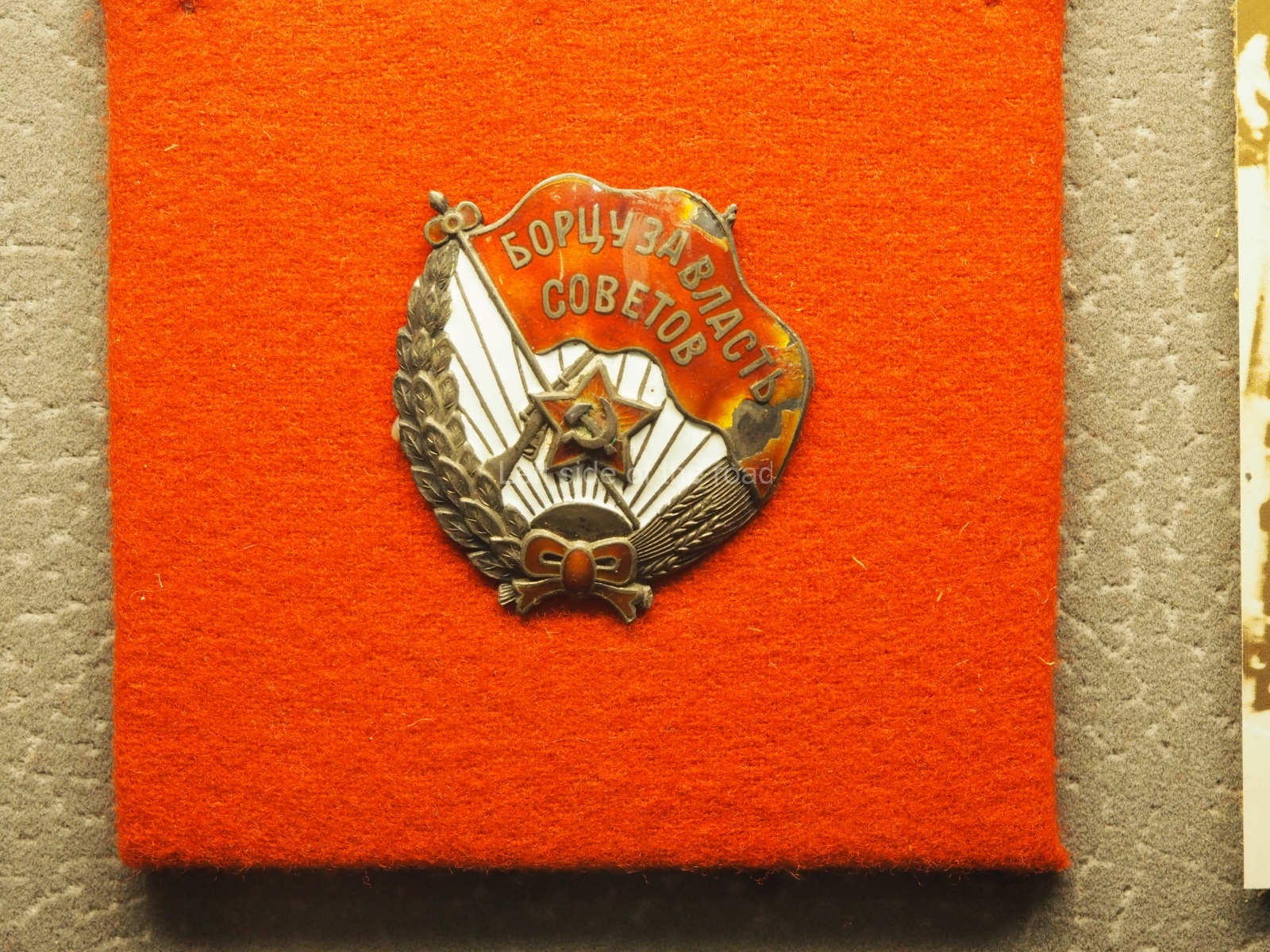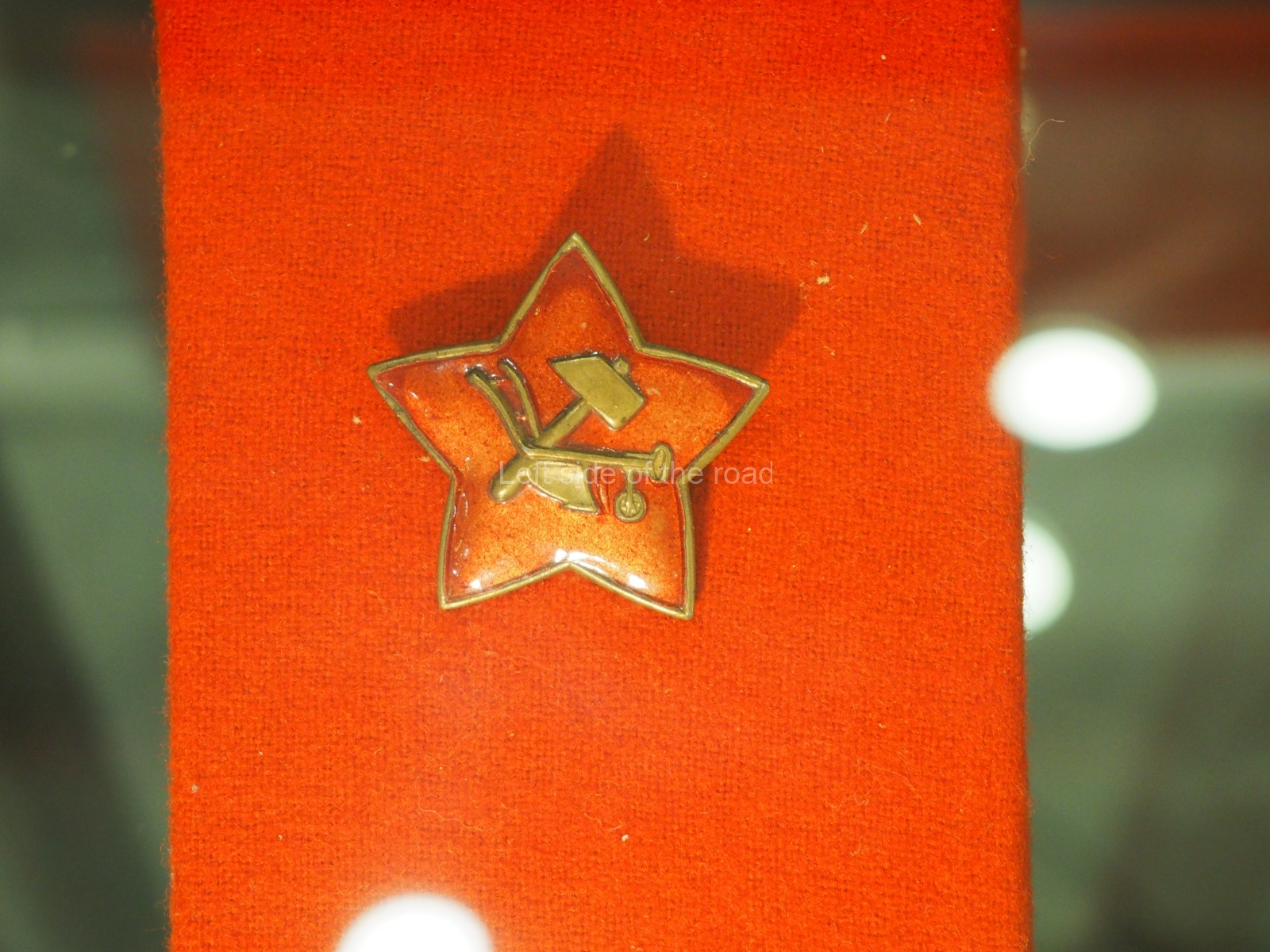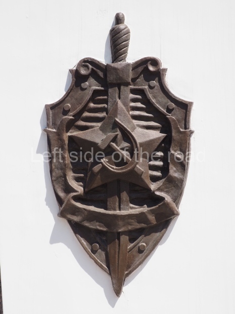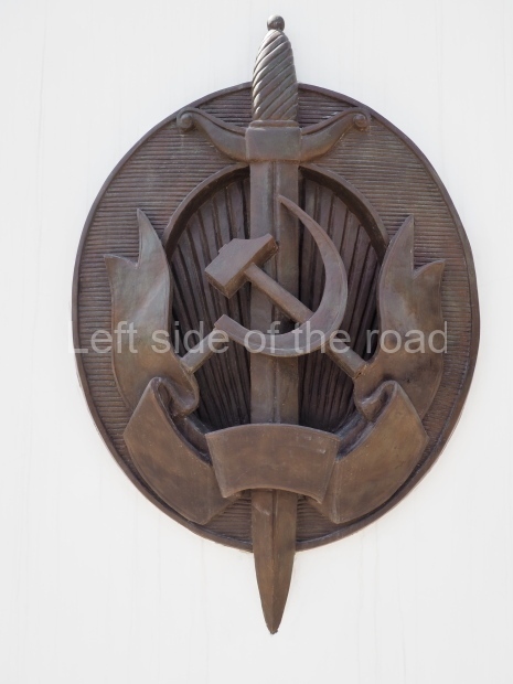 a large, metal image of the symbol of the NKVD – which has the Hammer and Sickle superimposed on a vertical sword;
