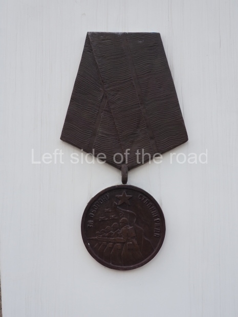 a large, metal image of the Medal for the Defence of Stalingrad;
