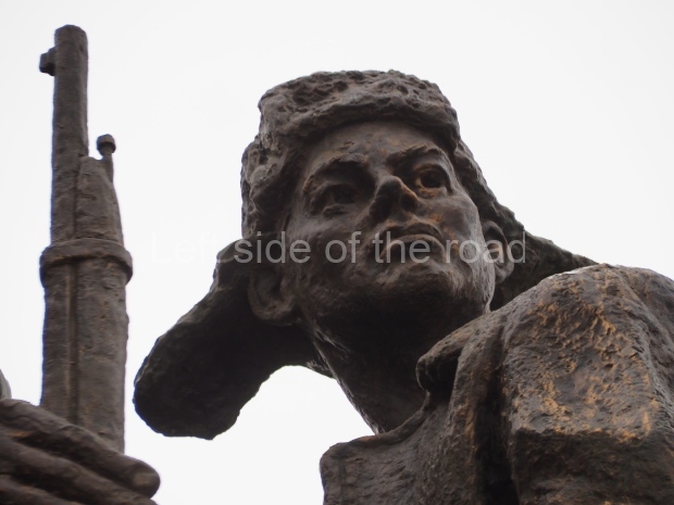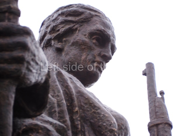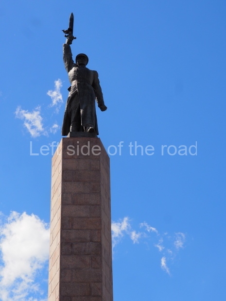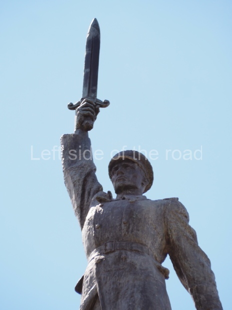 The monument consists of a pillar on top of which stands a uniformed soldier with his right arm raised high above his head and in his hand he is holding a sword. In November 1932 JV Stalin sent a message of congratulations to the then OGPU addressing them as ‘the bared sword of the working class’.