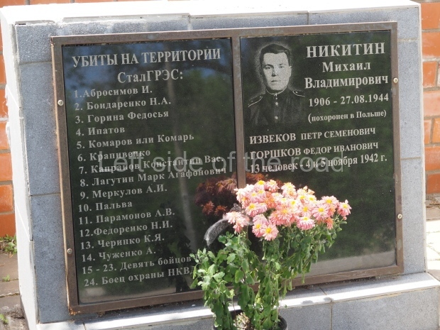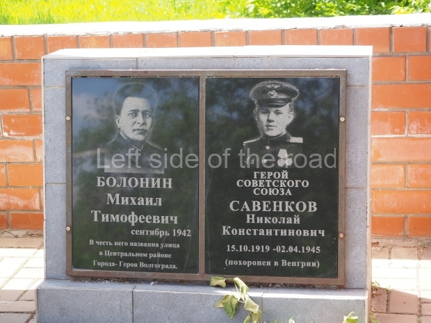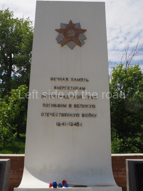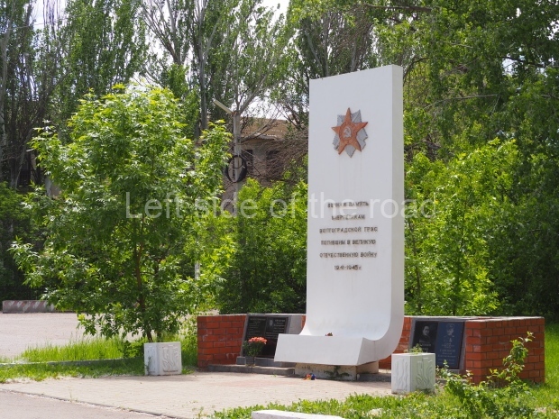 a small War Memorial to those of the town who gave their lives in the Great Patriotic War, with the names and the pictures of some from the area who were killed either in the Battle of Stalingrad or elsewhere on the front in the war against Nazism;