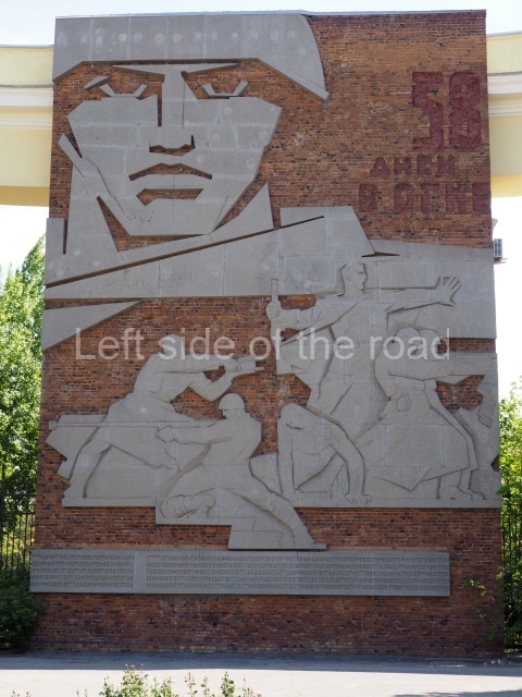 The statue is directly across the road form the Zavod Barrikady Metro stop.