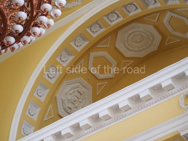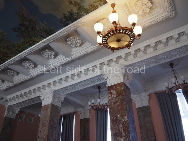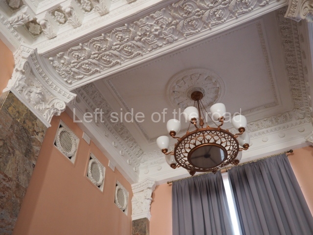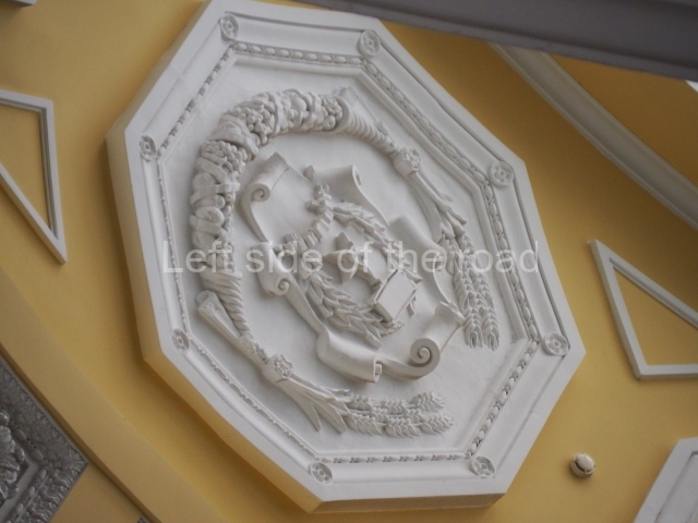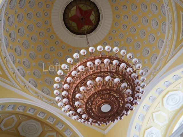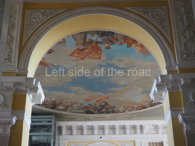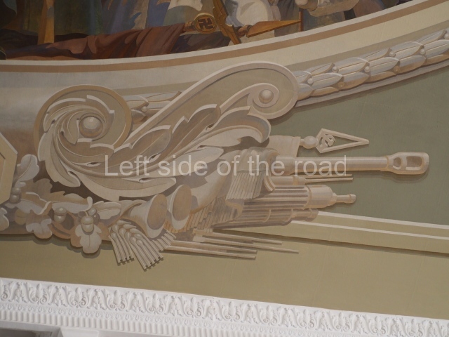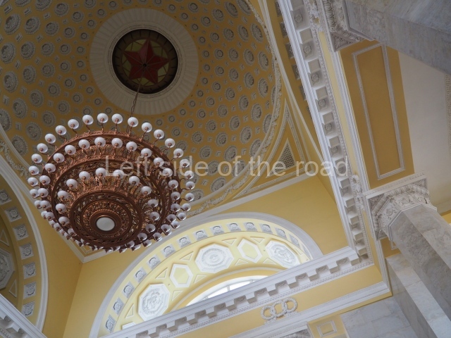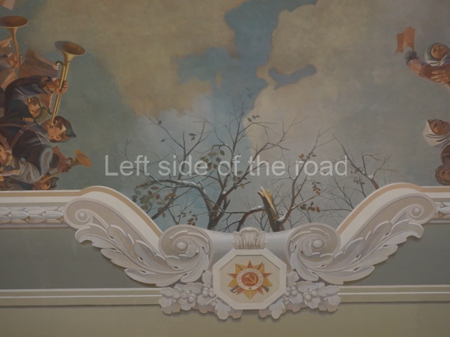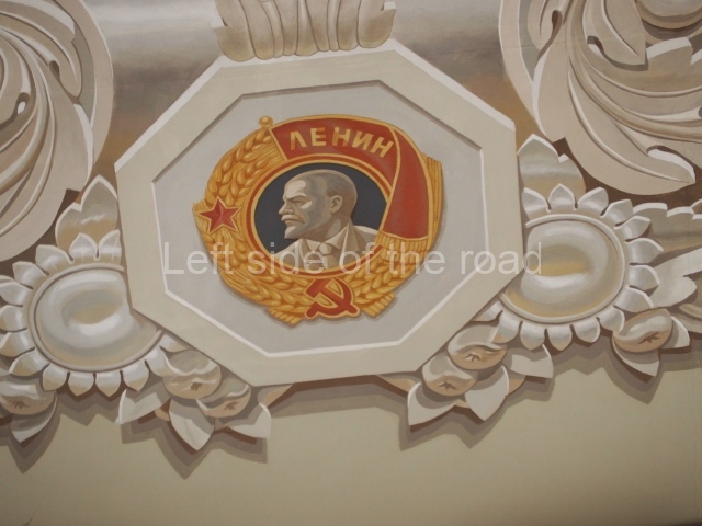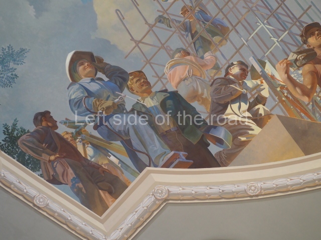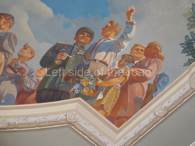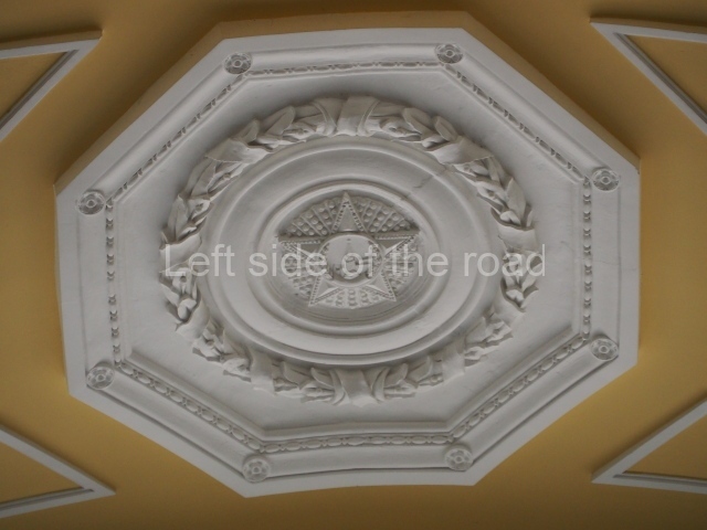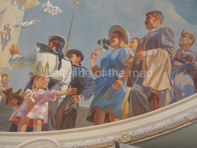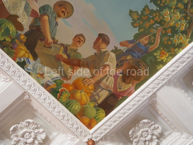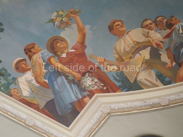 There are three of these ceiling panels – one circular over the ticket hall, another circular over the seated waiting area and the third is rectangular in a large room off the ticket hall that used to be a cafe but which is now a VIP/1st Class lounge – which no one seems to use. However, when I asked to take pictures of that ceiling panel, and the room itself, there was no problem.