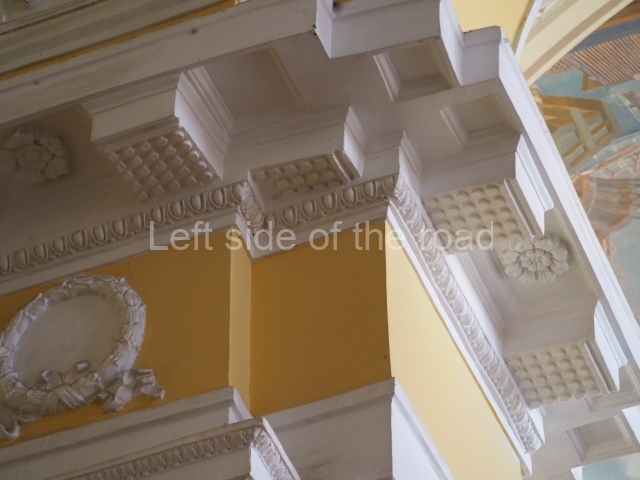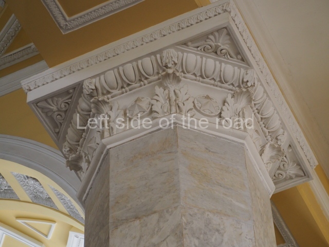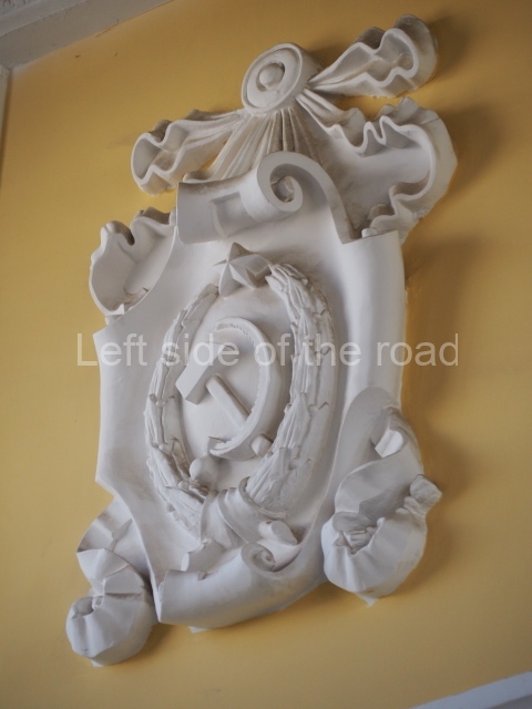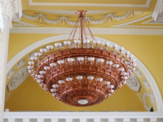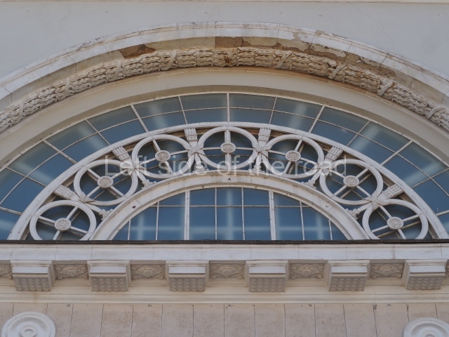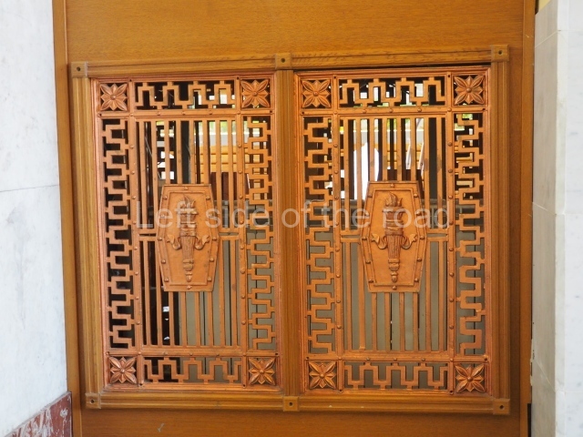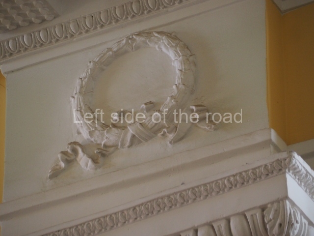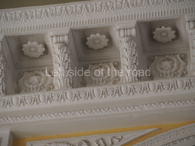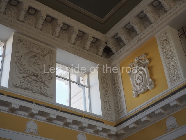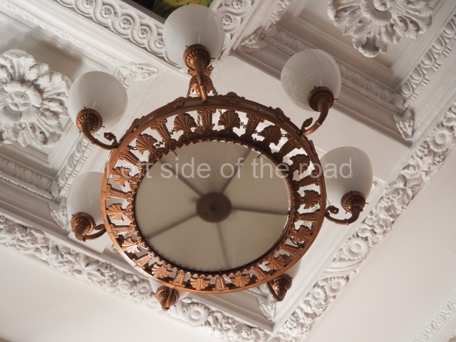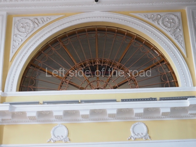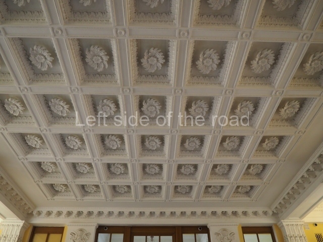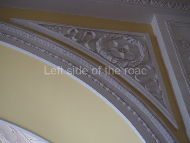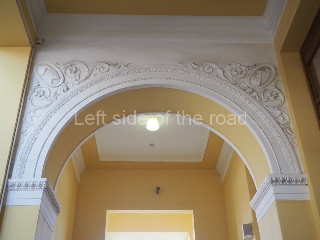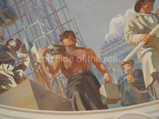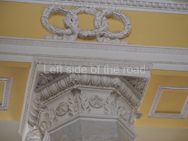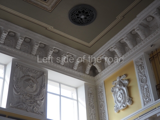 There are three of these ceiling panels – one circular over the ticket hall, another circular over the seated waiting area and the third is rectangular in a large room off the ticket hall that used to be a cafe but which is now a VIP/1st Class lounge – which no one seems to use. However, when I asked to take pictures of that ceiling panel, and the room itself, there was no problem.