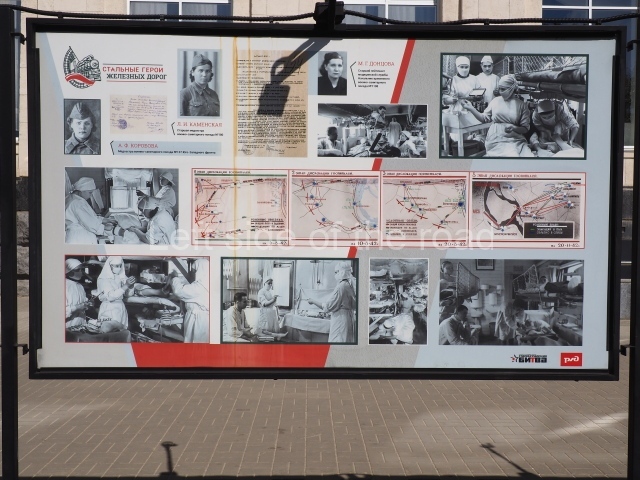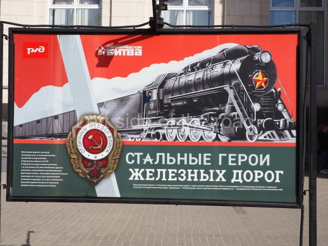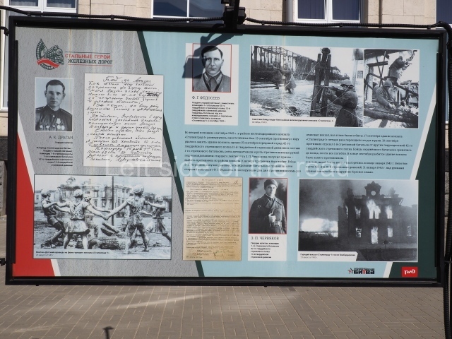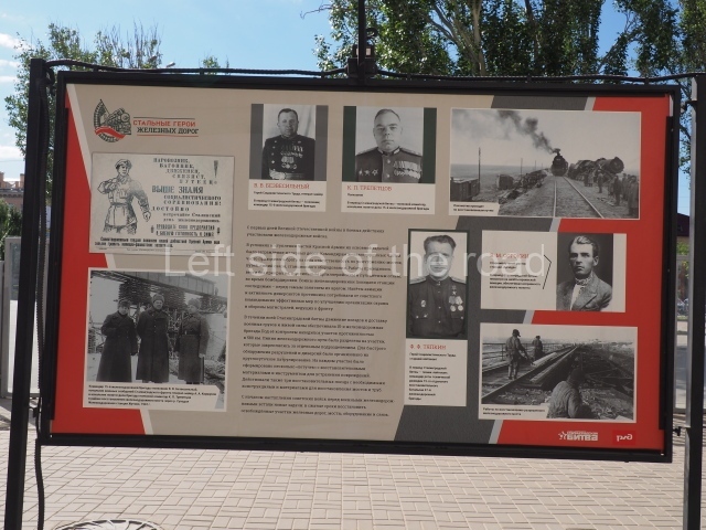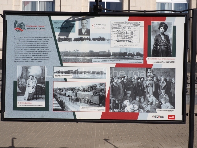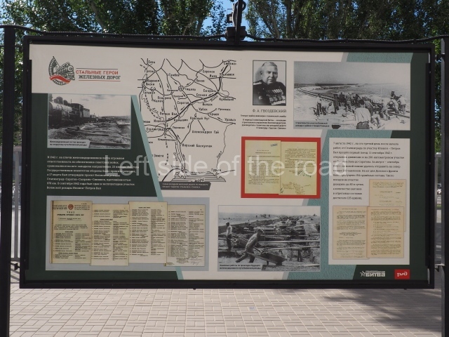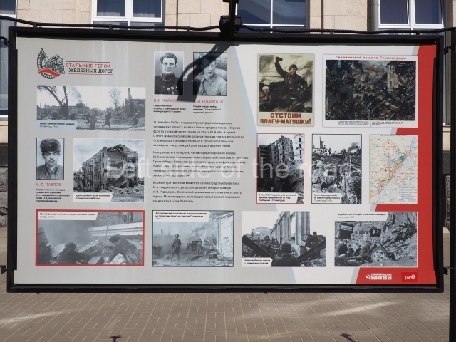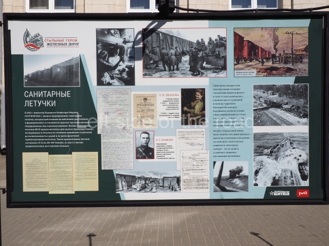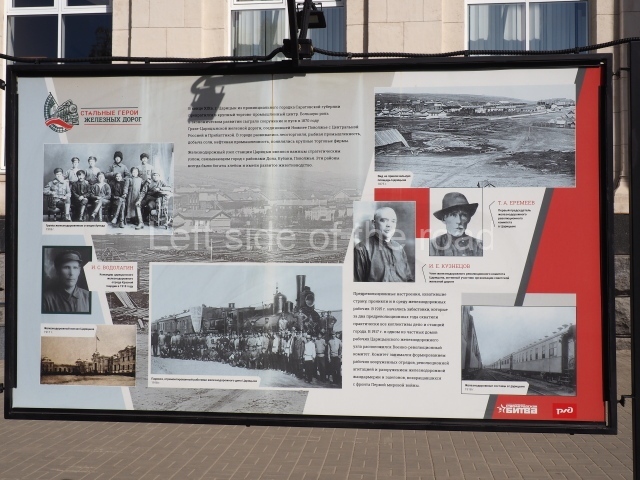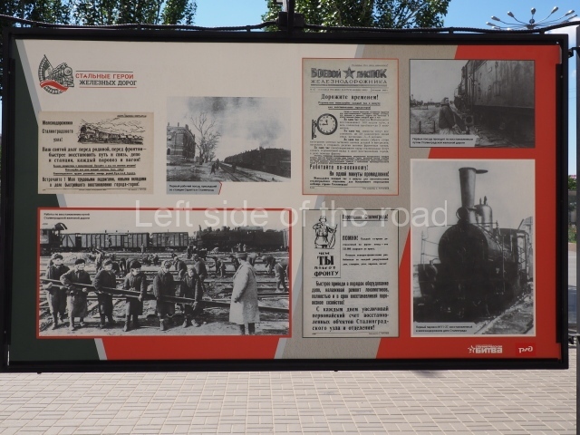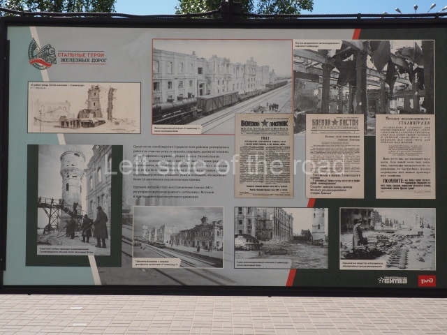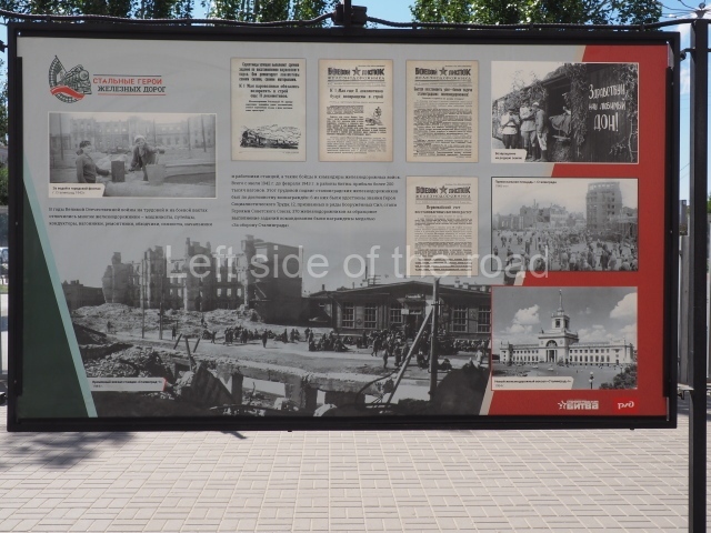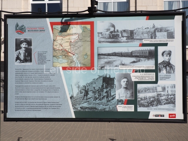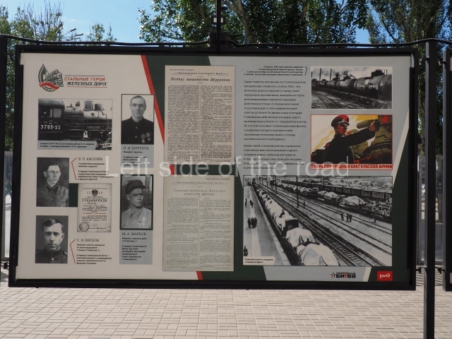 On my visit in late May 2024 there were a number of information panels on display on either side of the main station building entrance basically telling the story of the role of the building in the history of the city from the time of the Civil War, through the siege to reconstruction after the war. This was soon after the celebration of Victory Day of May 9th so they may only have been there temporarily.