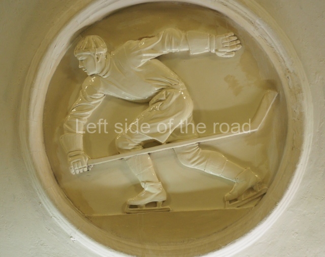 Dinamo (Дина́мо) is a Moscow Metro station on the Zamoskvoretskaya Line. It is located under Leningradsky Avenue, and named after the nearby Dinamo Stadium. The station was opened in 1938 as part of the second stage of the system. The station is situated at the depth of 39.6 metres (130 ft) and follows a tri-vaulted deep-level pylon design. Designed by Ya. Likhtenberg and Yury Revkovsky, the station features a sport-themed decoration with bas-reliefs designed by Ye. Yason-Manzer depicting sportsmen in various practices in the vestibules and the central hall.