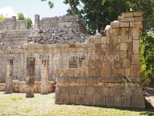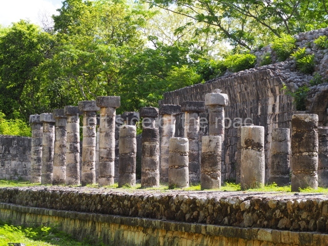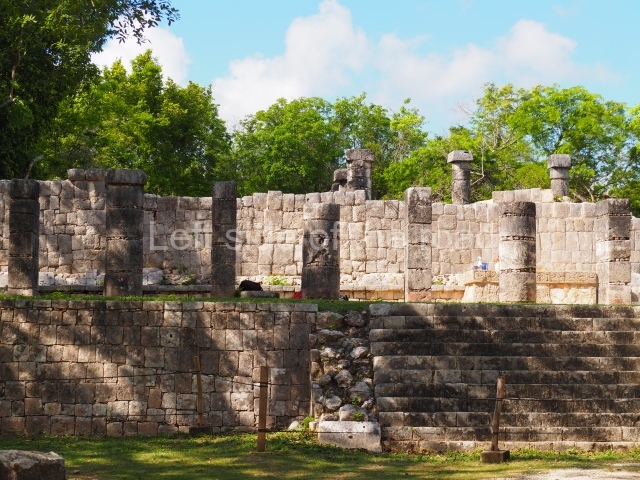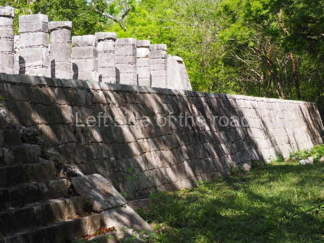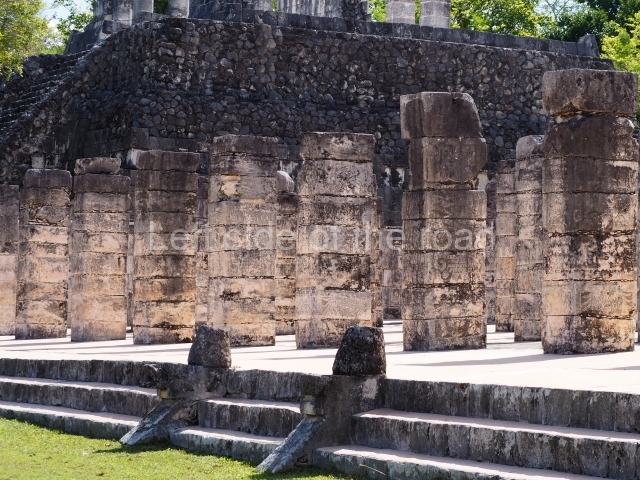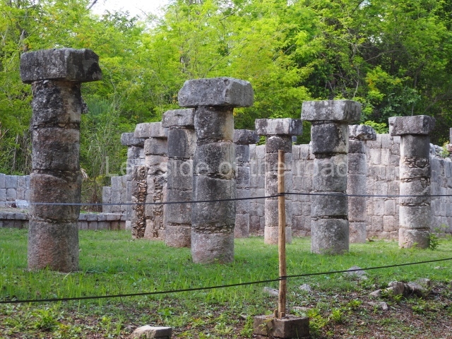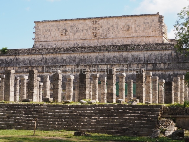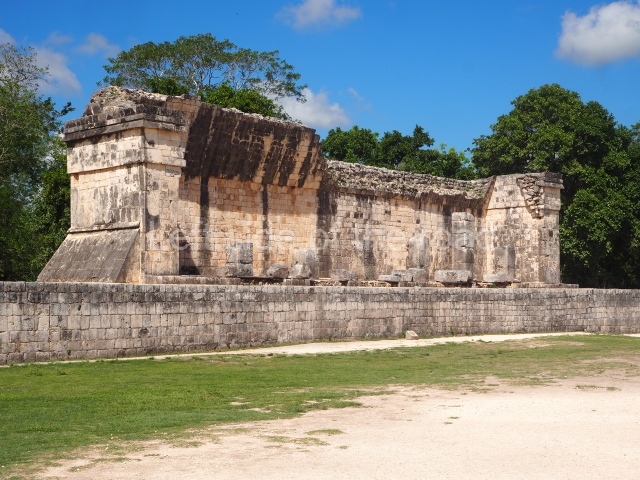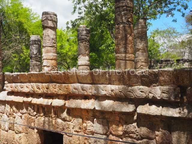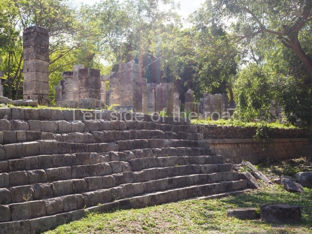 This is a low platform abutted to the inner face of the wall that surrounds the main group at Chichén Itzá. The columns are arranged in a single row and may have supported a sloping roof. Due to its proximity, its function was probably related to Sacbe 1 and the control of access to the Cenote.