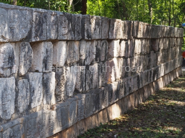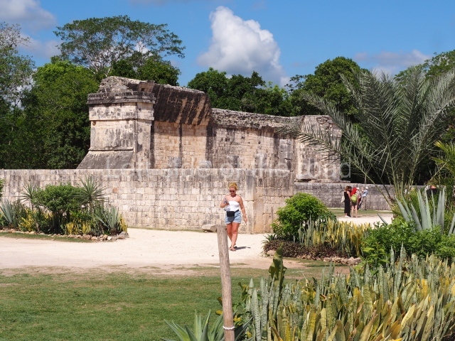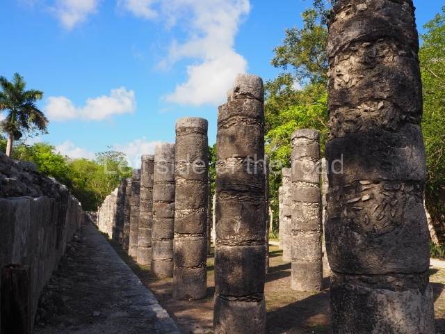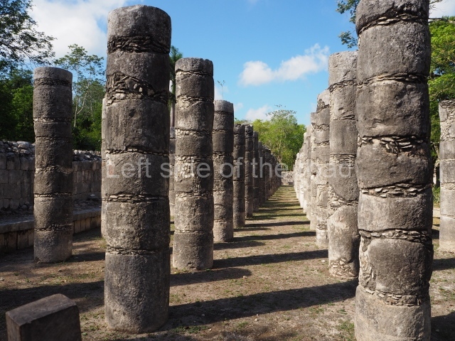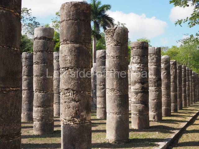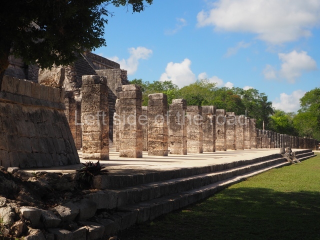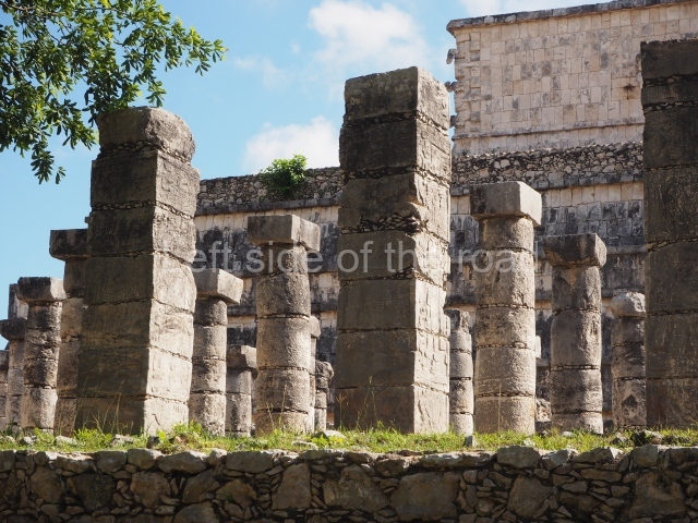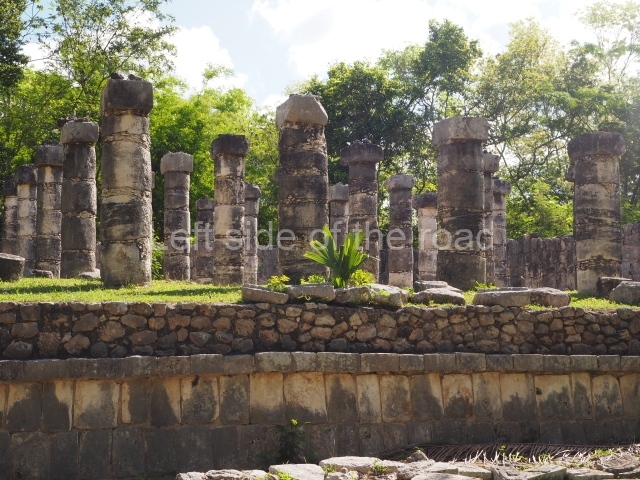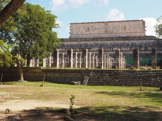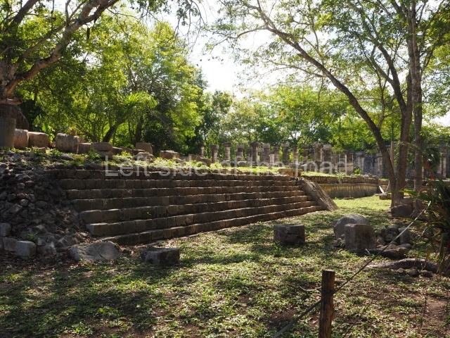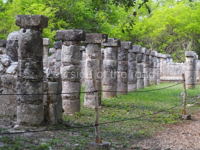 This is a low platform abutted to the inner face of the wall that surrounds the main group at Chichén Itzá. The columns are arranged in a single row and may have supported a sloping roof. Due to its proximity, its function was probably related to Sacbe 1 and the control of access to the Cenote.