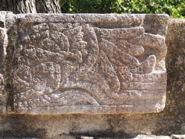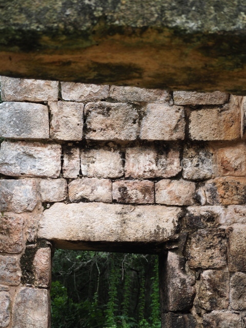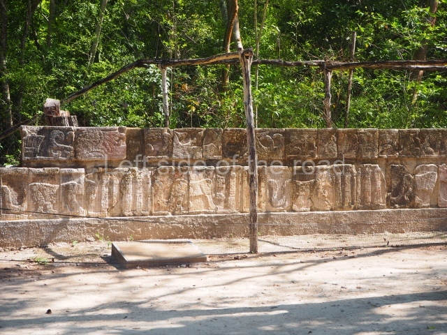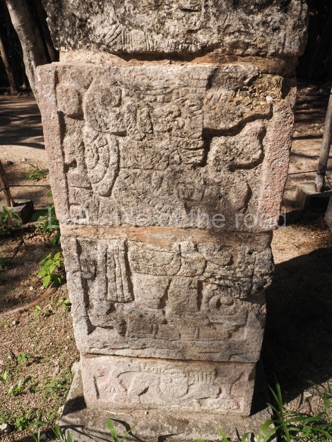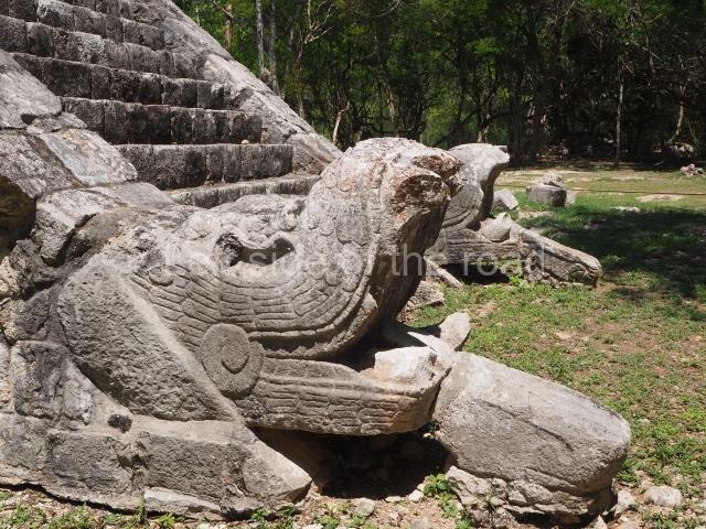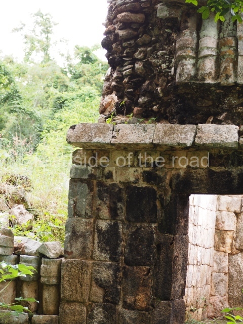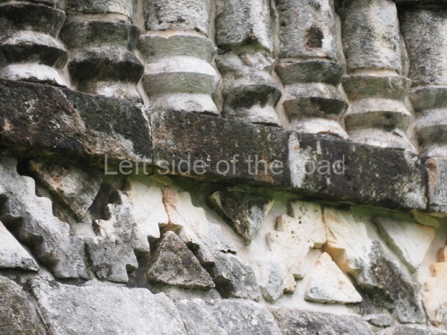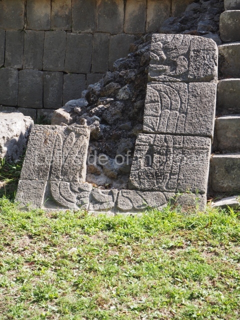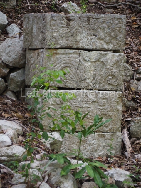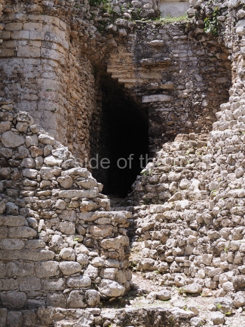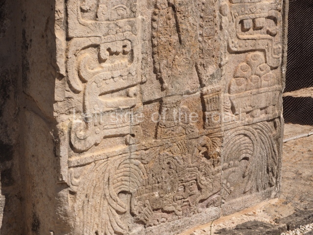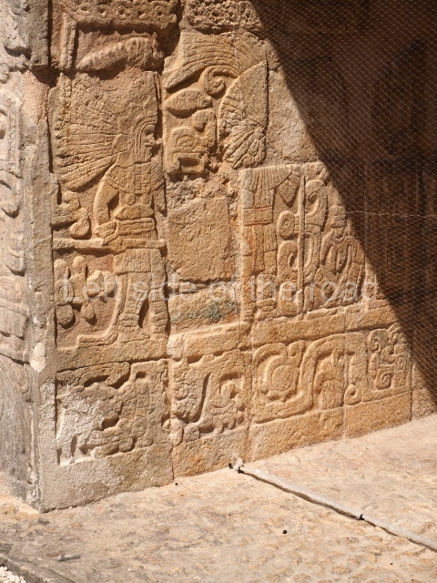 Although this building has virtually collapsed, it is still possible to see the carefully carved inscriptions on the lintels, which have been preserved in situ and depict mythological creatures, such as the knife-bird and plumed serpents, as well as references to fire ceremonies. The date mentioned is 13 July 881.