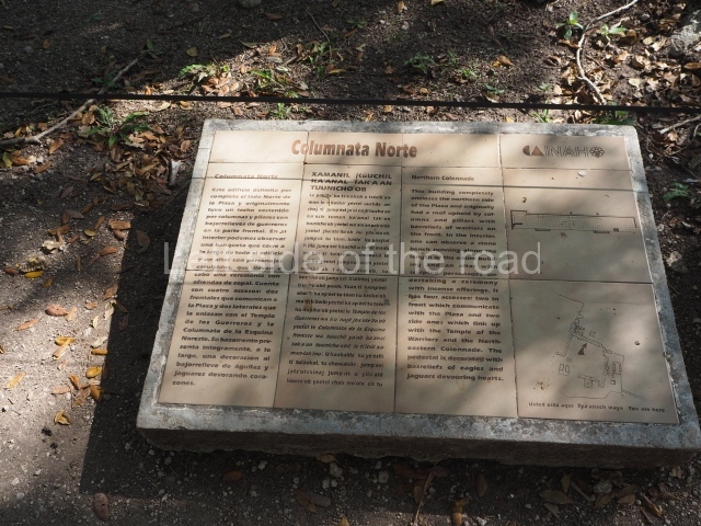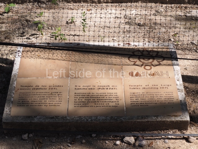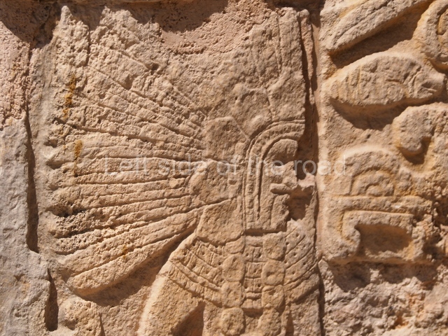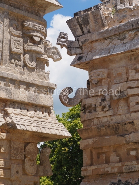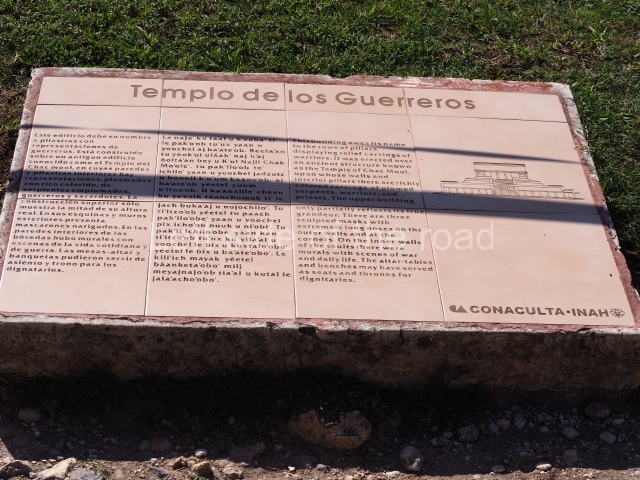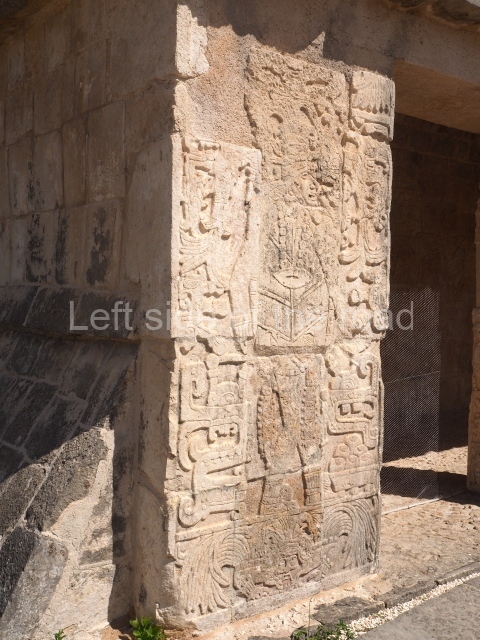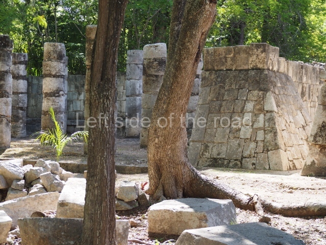 This is situated on the north side of the plaza and originally had a roof supported by columns and pillars with bas-reliefs of warriors. Inside, a bench runs along the building and there is an altar adorned with carvings of figures performing a ceremony with copal (a type of resin produced from plant sap) and offerings. Stairways lead from this space to the Temple of the Warriors and the Palace of Balam Kauil Ahau. There are bas-reliefs of eagles and jaguars devouring hearts.