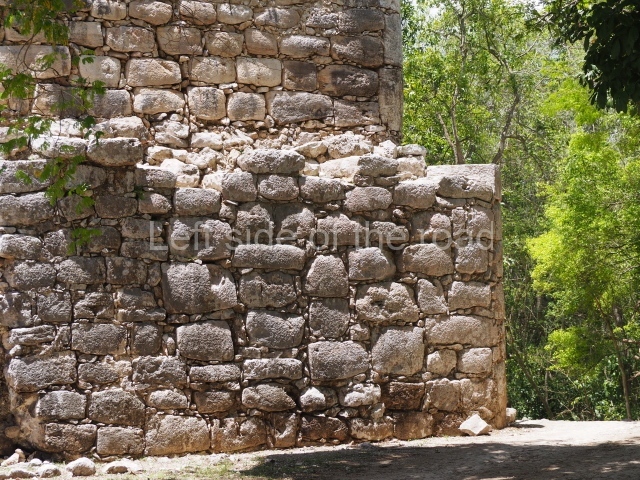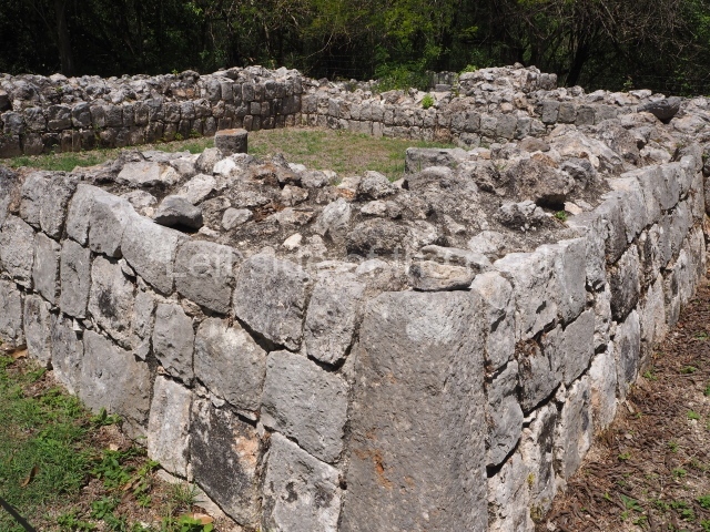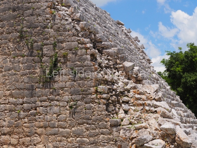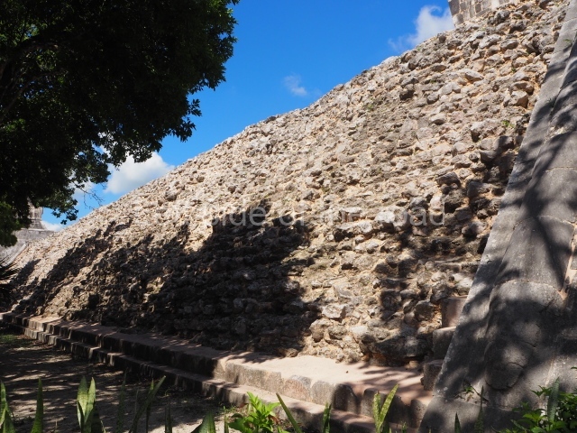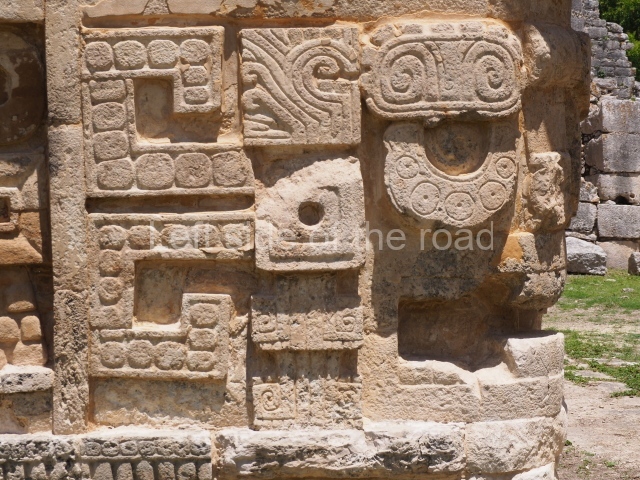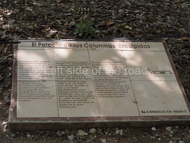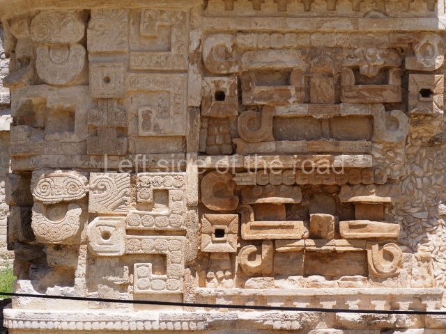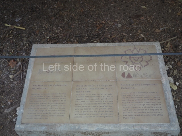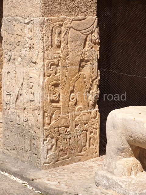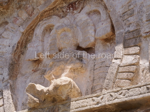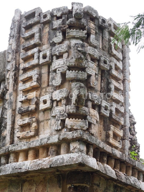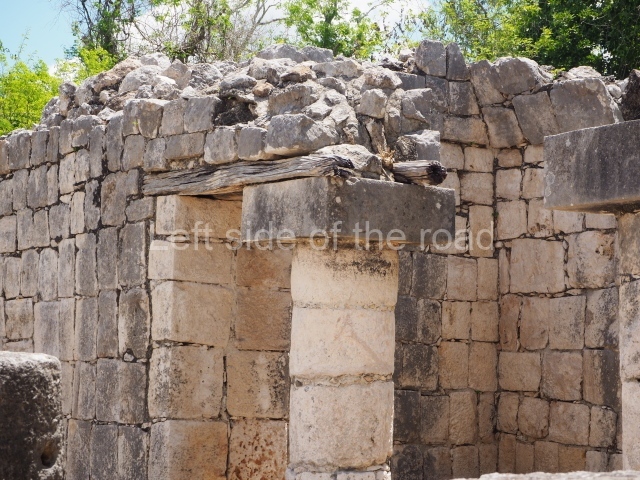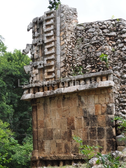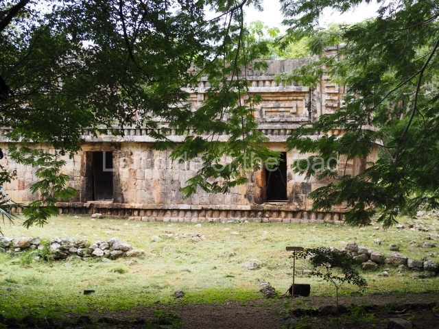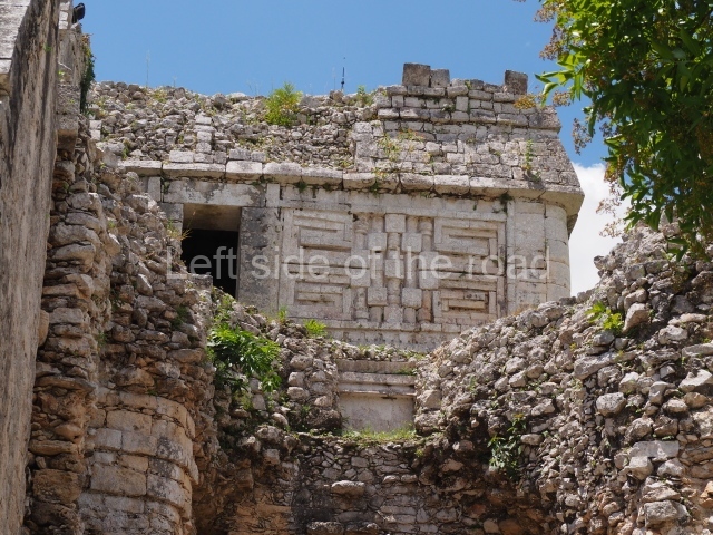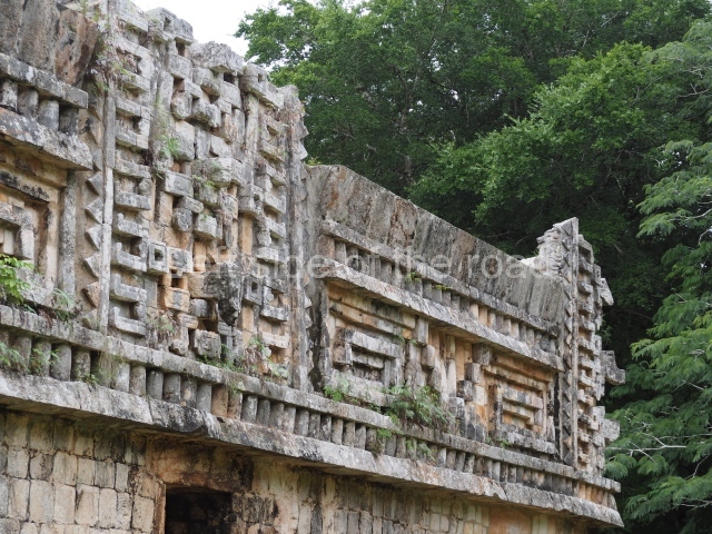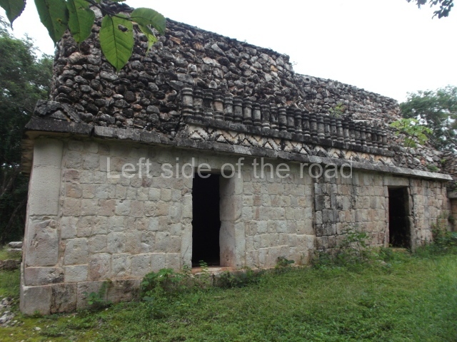 This is a very compact palace comprising rows of bays whose decorative programme includes Puuc elements such as the friezes with bevel-edged mouldings. The construction has 17 rooms arranged symmetrically around a central block. In one of the rooms on the south side is a lintel on the lower part of which is a carving of a governor, official or head of a dynasty on his throne with a jar in front of him and a glyphic text that mentions ‘Yahaual Cho’… the divine Cocom’ and dates from around AD 869/870; one specific date is ’11 Tun 1 Ahau’ (AD 880), probably a reference to the inauguration of the building.