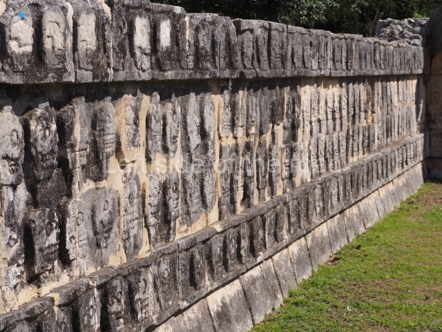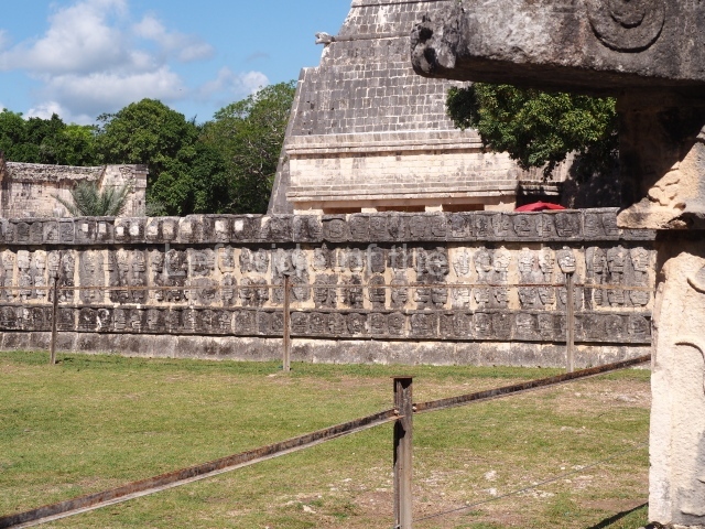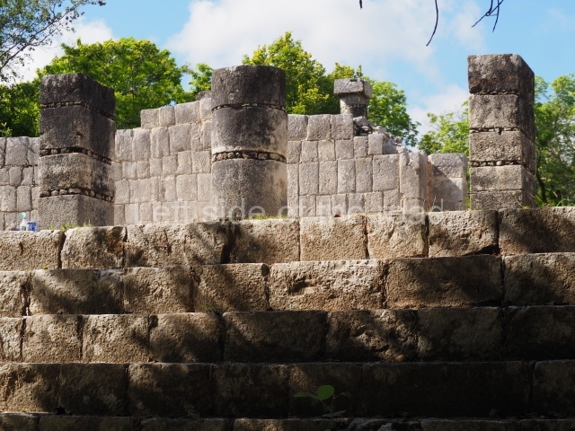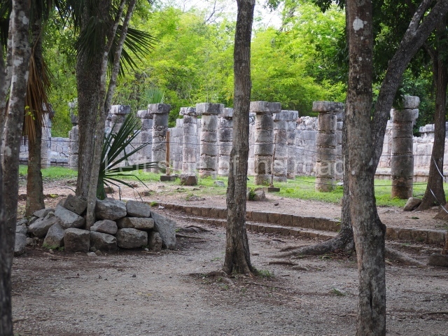 This is the longest colonnaded construction at the site. Originally covered by a vaulted roof, its main façade overlooks the plaza in front of the Castillo and a passageway connecting it to the Plaza of the Thousand Columns behind it. It must have been built to accommodate the great multitudes who gathered for festivities, meetings and trading purposes. The passageway leads to the Plaza of the Thousand Columns.