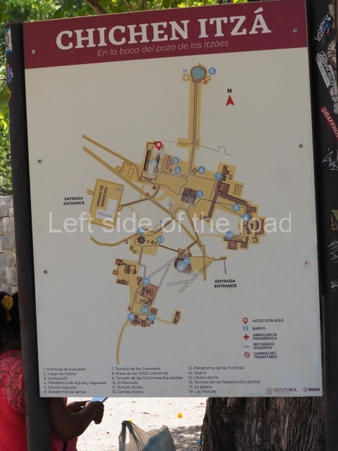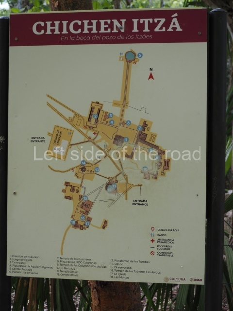 - Great North Platform; 2. Castillo; 3. Platform of Venus; 4. Tzompantli; 5. Great Ball Court; 6. Sacred Cenote; 7. Temple of the Large Tables; 8. Temple of the Warriors; 9. Plaza of the Thousand Columns; 10. Plaza of the Ossuary; 11. Caracol; 12. Plaza of the Nunnery.