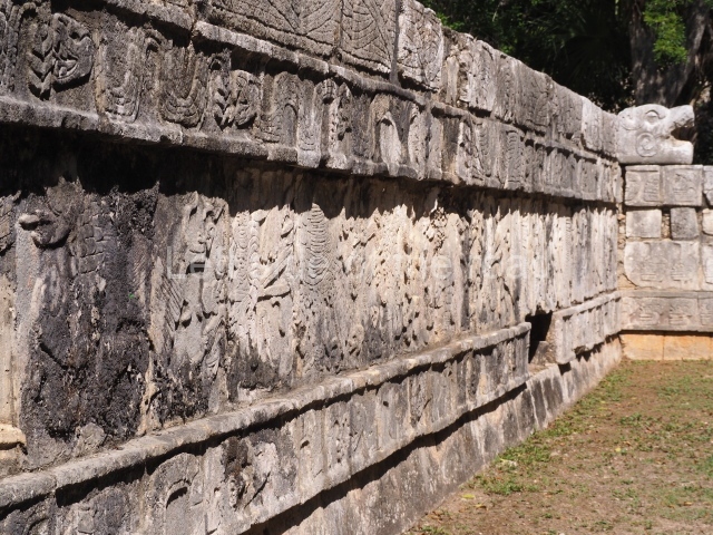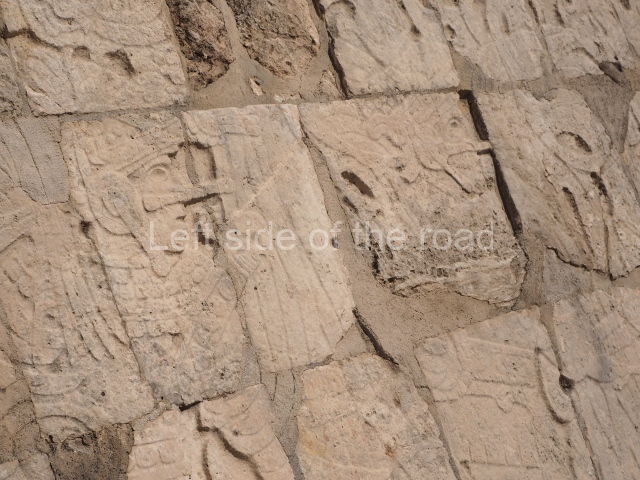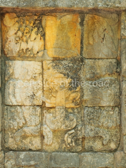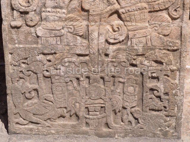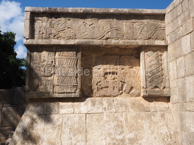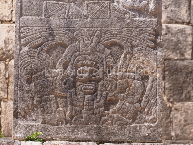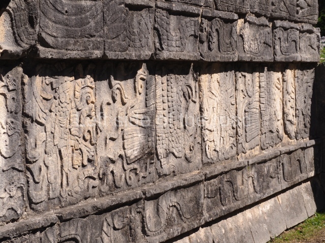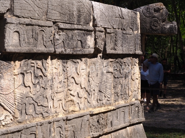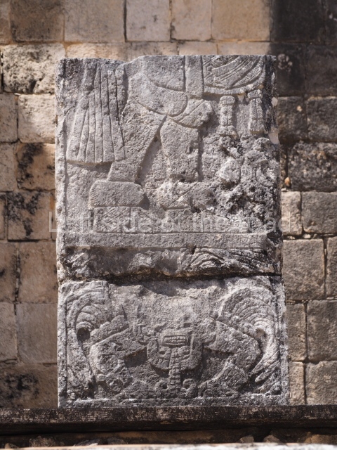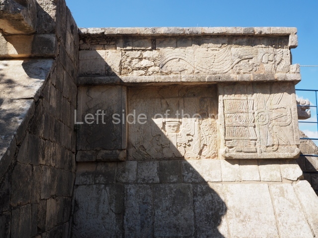 This is situated on the east side of the plaza on a high platform fronted by a colonnade, in the same style as the Temple of the Warriors. It takes its name from the north and south panels of the colonnade, which depict scenes with important personages, animals and plants, both real and mythological. The offerings rescued during the excavations are associated with the fire ceremonies that were performed in the temple.