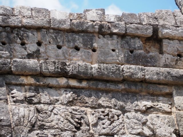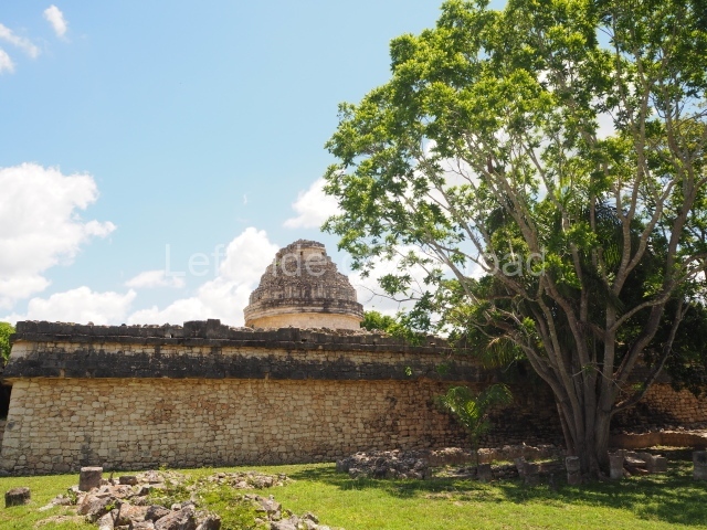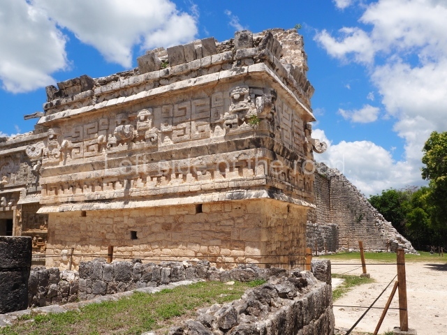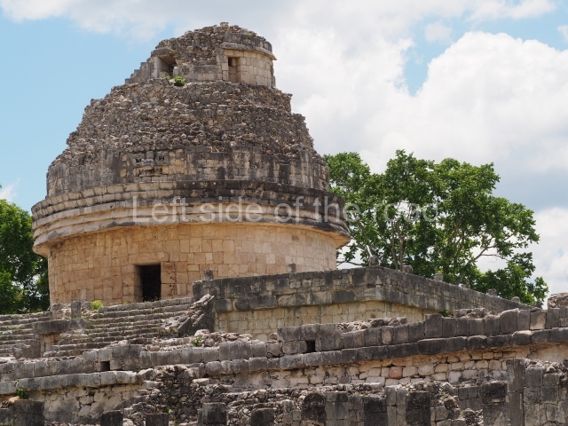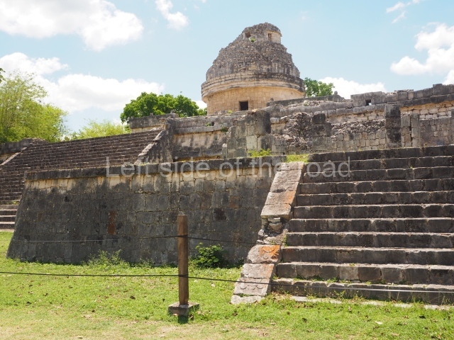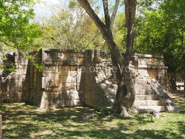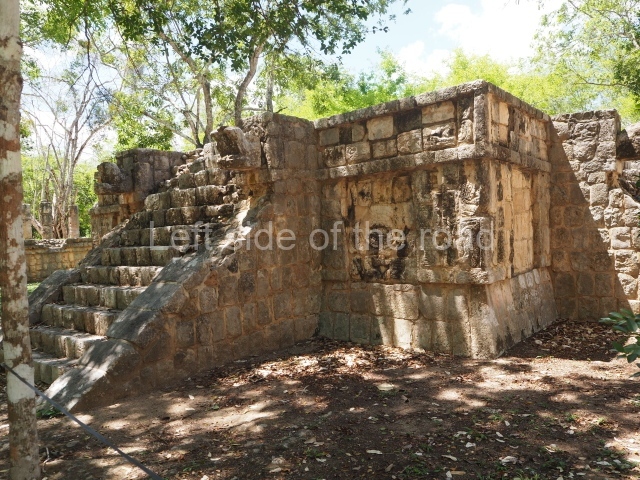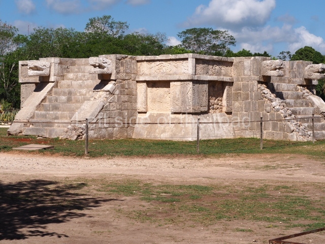 This is one of the few examples of the circular form at Chichén Itzá. An empty box of offerings was found on its west side. Both buildings were probably used as tribunes for ceremonies, rites and dances.