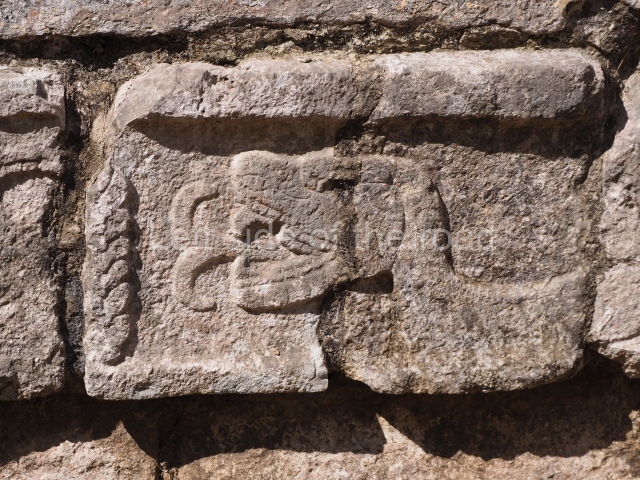 Nearly all the long, detailed inscriptions in the Maya glyphic script date from a short period, although they do not display the same calligraphic quality as those of the earlier temples in the central Maya area or, to a certain extent, those of the nearby Ek’ Balam and Coba. The content of the inscriptions is also different in that these are no longer devoted exclusively to the glorification of a specific governor or dynasty, which has given rise to the hypothesis that the system of government at Chichén Itzá was different from that of earlier Maya states, being based on consensus government rather than monarchic government. The only historical figure who, along with his immediate family, seems to have enjoyed a certain power is a ‘great captain’ Kakupacal (Shield of Fire); several other names appear but tend to refer to gods.