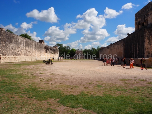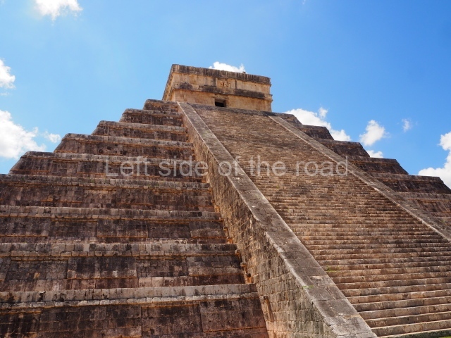 It’s not really how but when. The aim should be to get to the site as early as possible. The ticket office opens at 08.00 and if you are there before that you will have a short time before the site becomes overwhelmed with organised tours from the main resorts of Cancun or Playa de Carmen. I stayed in the small village of Pisté, which is about 2 kms north of the site. In theory combis call into Chichén Itzá on their way to Valladolid – in practice perhaps not. A taxi from Pisté will cost in the region of M$70 but gets you near enough first in the queue if you leave the village at 07.30.