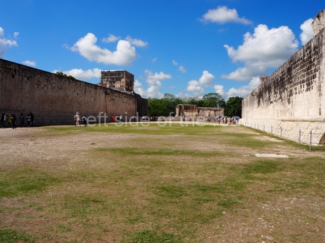 This is the largest ball court in Mesoamerica, measuring 120×30 m. It has two long lateral constructions that sported the stone rings with images of intertwined plumed serpents and sloping benches with scenes of players being sacrificed. The scenes represented probably referred to mythological or historical events associated with the rulers of Chichén Itzá. U-shaped walls seal both ends of the court and provide the base for various buildings richly decorated with reliefs and paintings. Situated at the west end is the Temple of the Jaguars and Eagles, which contains chambers on different levels and walls in which processions of lords and battle scenes offer vivid images of the history of Chichén Itzá.