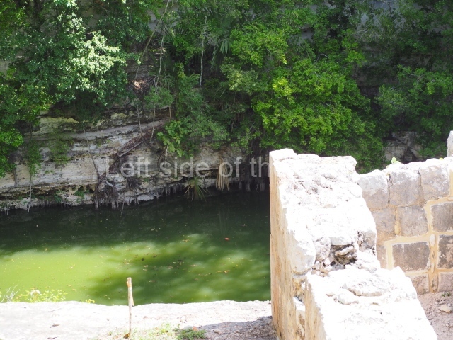 Known as Chen ku in the Yucatec Maya language, this is a natural, almost circular well which different sources have described as a centre of pilgrimage and offerings, an object of worship throughout the Terminal Classic and Post-classic, when the Maya sent messages to the gods through this ‘door’, especially at times of natural disasters, hoping for a favourable response if any of the sacrificial victims survived. Measuring 60 m in diameter, the water level is situated 22 m from the top with a depth that varies been an additional 6 and 12 m. The explorations undertaken in the waters have uncovered pieces and fragments of gold, copper, tumbaga (an alloy of gold and copper), obsidian, shell, wood, fabric, copal, flint, etc., as well as the skeletons of children and adults. The following structures are all situated at the west end of the Great Plaza: