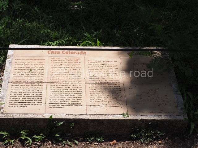 The name of this construction is derived from the traces of red paint found inside. It contains an antechamber and three rooms with a hieroglyphic inscription in the main one referring to date in the second part of the 9th century AD. The roof combs recall the Puuc style. Judging from the ball court on the east side, with Maya-Toltec reliefs, the construction must have had a religious and public function. The group and the plaza which it forms along with the Casa del Venado (‘Deer House’) were delimited by their own wall.